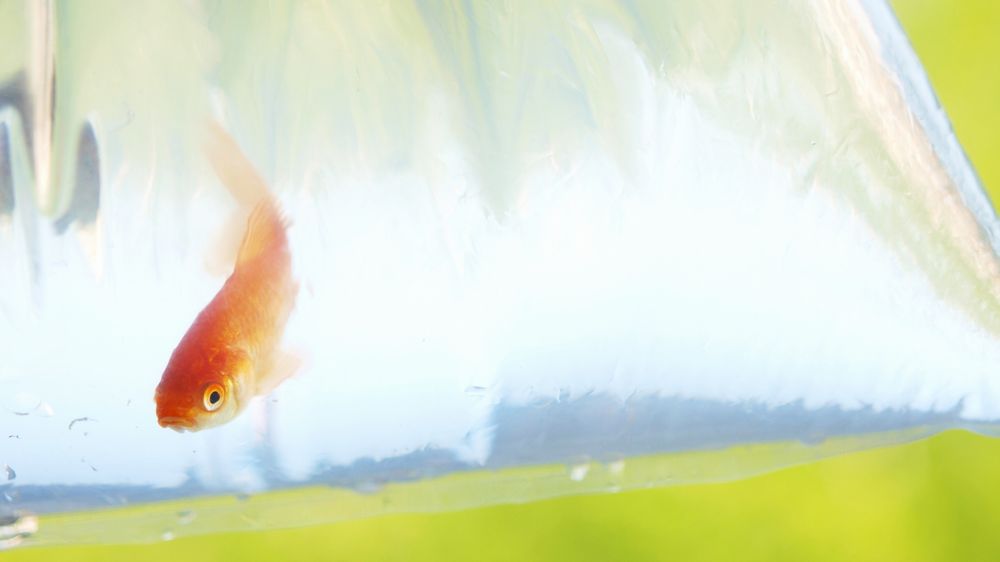 袋の口を開いて静かに浮かべ、金魚が自分から移動するのを待ちます。金魚がトリートメント水の方に移ったら、移動は完了です。